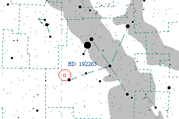 HD 192263 is located in the constellation of Aquila, the Eagle. HD 192263 is orbited by a planet with a mass 75% that of Jupiter and at approximately the same distance that Mercury is from the sun.